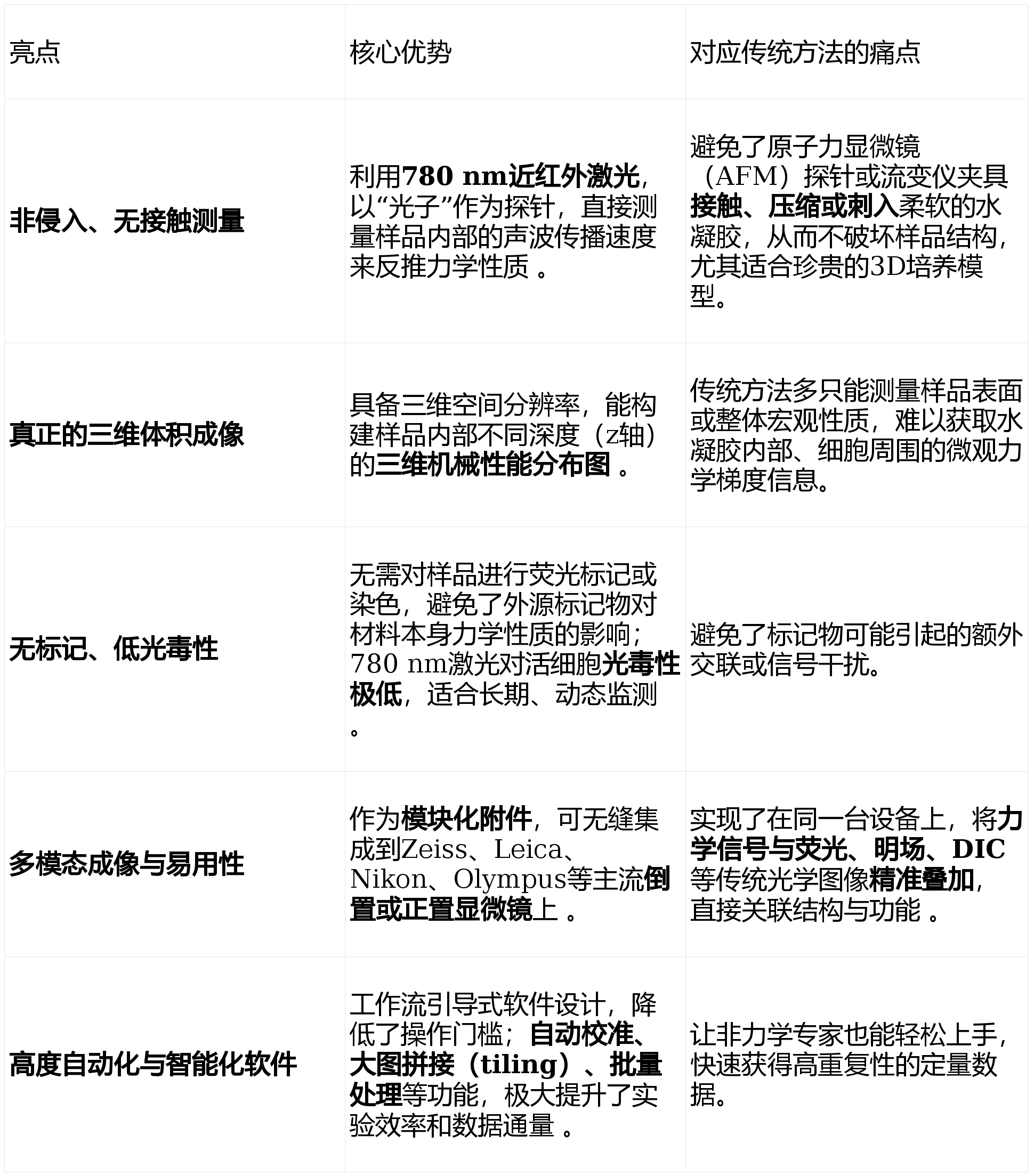 二、产品亮点与核心优势 该系统的亮点和优势,恰好解决了传统方法在测量软材料(如水凝胶)时的痛点。