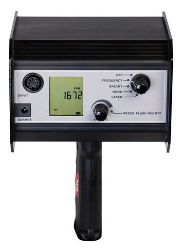 Built-In Laser Light Source provides a Non-Contact "Tachometer Mode" when used in combination with reflective tape. It also features a unique "Auto-Sync" feature using the Laser Tachometer Mode to automatically set the correct flash rate to instantly "freeze" the rotating target without requiring any adjustment by the end-user. It also features a "Slow Motion" Mode that allows the user to offset the flash rate to put the "frozen" image into virtual "slow-motion".