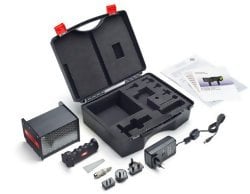 The QBS-LED is supplied as a complete kit including the strobe, removable handle, universal AC adapter with USA, EURO and UK plugs, DIN connector (for use when externally triggering from sensor), reflective tape, traceable calibration certificate and instruction manual with Quick-Start Guide -- all supplied in a foam-fitted plastic carrying case.
