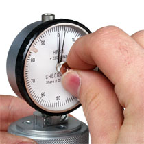 Checkline HP Series durometers are designed to measure the hardness or firmness of a wide variety of parts and test samples. This unit is designed in accordance with ASTM and DIN quality standards which specifies the bottom contact area (working diameter), sensing pin configuration and internal spring forces. Additionally, the displacement of the sensing pin, relative to the dial indicator, is specified by these standards. The HP series provides an analog dial indicator calibrated for a range of 0-100 Shore units along with Min/Max markers, which are available to provide a visual indication of the acceptable hardness range. All Check-Line Durometers feature a unique spring-operator test pressure shell, which helps insure that similar test pressures are used for each measurement. This system significantly enhances the measurement repeatability, especially between different operators. Oversized flat bottom surface makes position of working face (area of contact as specified in ASTM/DIN Standards) convenient and consistent which limits variability between operators.