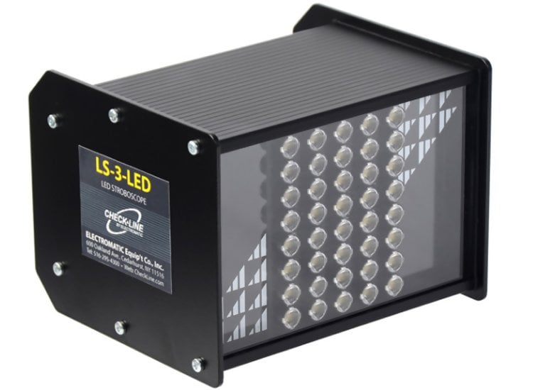 LED Inspection Strobe Light for process and narrow web inspection The new LS-3-LED is a high-performance LED stroboscope designed for inspection of webs up to 10"/25cm. Built-in strobe control allows for easy adjustment of flash rate, brightness, phase and more. External input allows syncing the strobe with a remote sensor. The LS-3-LED features a rugged aluminum housing with forty, high performance LEDs providing a peak brightness of 5000 Lux and convenient adjustment of flash duration to easily select the optimal balance of brightness and image sharpness. It is supplied with a universal battery charger (100-240VAC) with USA, Euro and UK plug adapters. A convenient tripod mount allows for easy installation on a range of equipment.