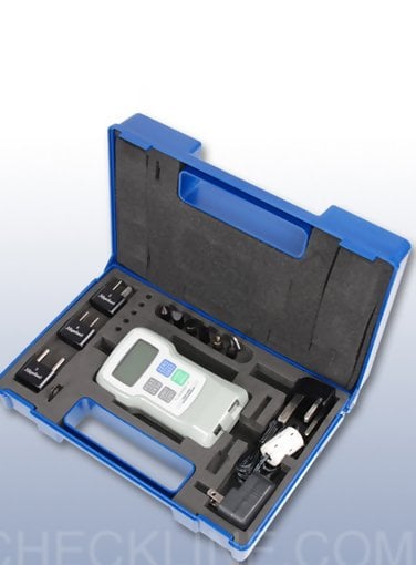 Includes Force Gauge, Universal 100-240V AC Adapter/Charger, 6 Attachments;Hook, Flat Head, Notched Head, Hanger, cone head & extension rod in a foam fitted carrying casea.