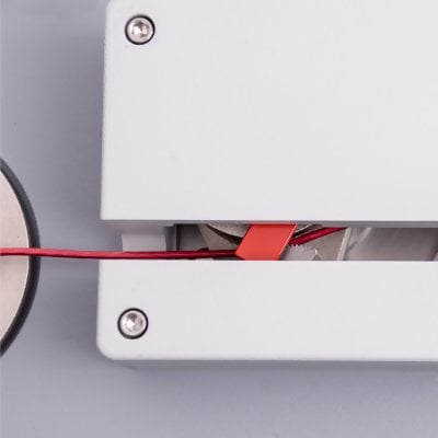The tester accommodates wire sizes up to AWG 3 (0.25 in [6.3 mm] OD), or custom sizes via the available machinable blank fixture. Auto-start automatically begins the test when the wire sample has been loaded. When the sample breaks, the tester can auto-reverse, output the peak force, store the peak force, and zero the display automatically, thereby increasing testing throughput. Further testing efficiency is achieved via the available Profiles function, through which multiple test setups may be saved and recalled as required.