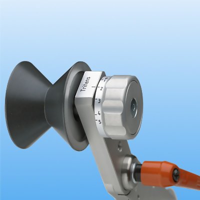 The 136-3E is fitted with an exclusive mechanical compensation which adjusts the measuring geometry to insure optimal accuracy regardless of the diameter of the material to be measured. It consists of an calibrated rotary dial fitted to the rear-side of the right outer roller. The user simply rotates the dial until the numeric value on the dial is set to the actual wire diameter & then is locked in position. To change for a larger or smaller diameter, unlock and dial to new value. Simple, quick and effective!