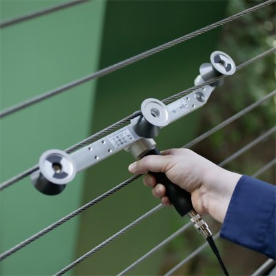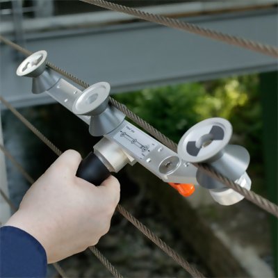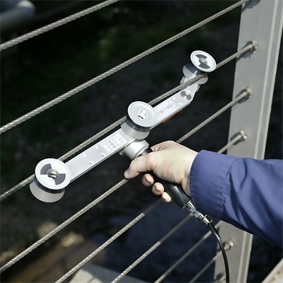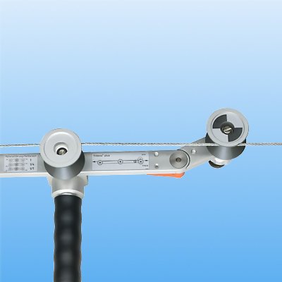 For Wire Diameters up to 0.200" / 5mm Designed for measuring wires & cables that are anchored/fixed at both ends (closed system) such as guy wires, support cables, tethers and more. Also commonly used on Kevlar, fiberglass and other hi-strength materials when used in a similar applications. The 136-3E employs a unique roller configuration and measurement scheme to minimize the deflection of the wire/cable. The total wrap angle of the material over the center sensing roller is 3 degrees eliminating all measurement errors! No other company or product in the world can make this claim! The material threading pattern (refer to illustration below) insures easy material acquisition and good tactile feedback allowing for excellent repeatability between measurements as well as between different users.