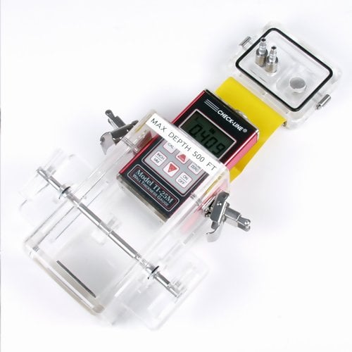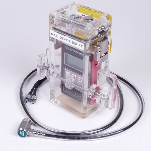 Complete Kit TI-25M-UWM Underwater Ultrasonic Thickness Gages are supplied as a complete kit including gauge, underwater enclosure, underwater transducer, coupling fluid, instruction manual and calibration certificate in a foam lined hard plastic carrying case.