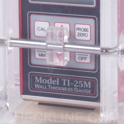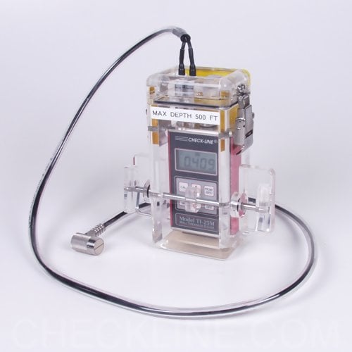 1.27 - 508.0 mm The TI-25M-UWM Underwater Ultrasonic Thickness Gauge accurately measures wall thickness and the extent of corrosion of all metals at depths of up to 300 feet (91.44 m). TI-25M-UWM Underwater Wall Thickness Gages can be used in a Single Thickness Reading mode or in a Scan mode , where the probe is dragged over a large measuring area. The minimum thickness reading recorded during the "scan" will be displayed.