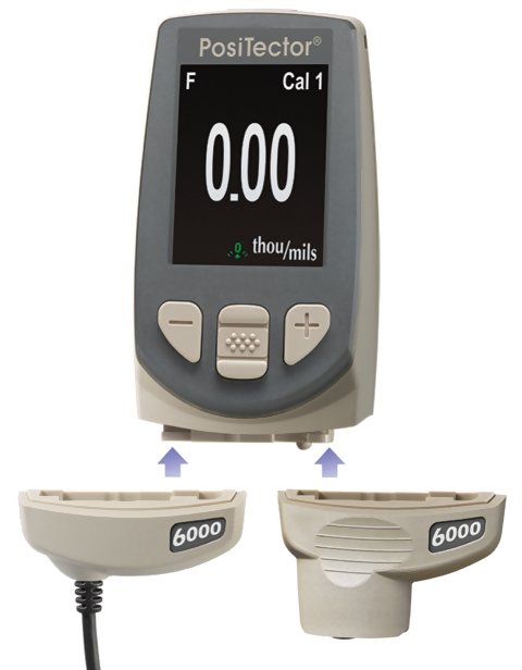 The PosiTector 6000 consists of a body and a probe. A wide selection of interchangeable probes are available. All bodies accept all probes.